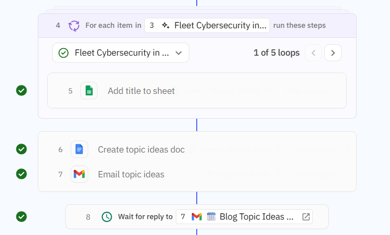 Every two weeks, our agent triggers a scan of the industry landscape. It generates five high-value blog topics tailored to current SEO trends and client goals.