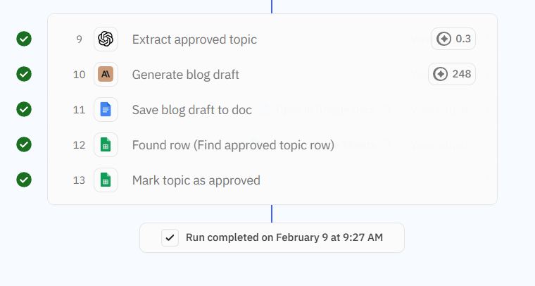 Once a topic is approved, the agent generates a comprehensive draft. It doesn't just "output text"; it creates a formatted document in a specific Google Drive folder. This is where we perform our quality control, refining the technical "Look" and ensuring the brand voice is perfect.